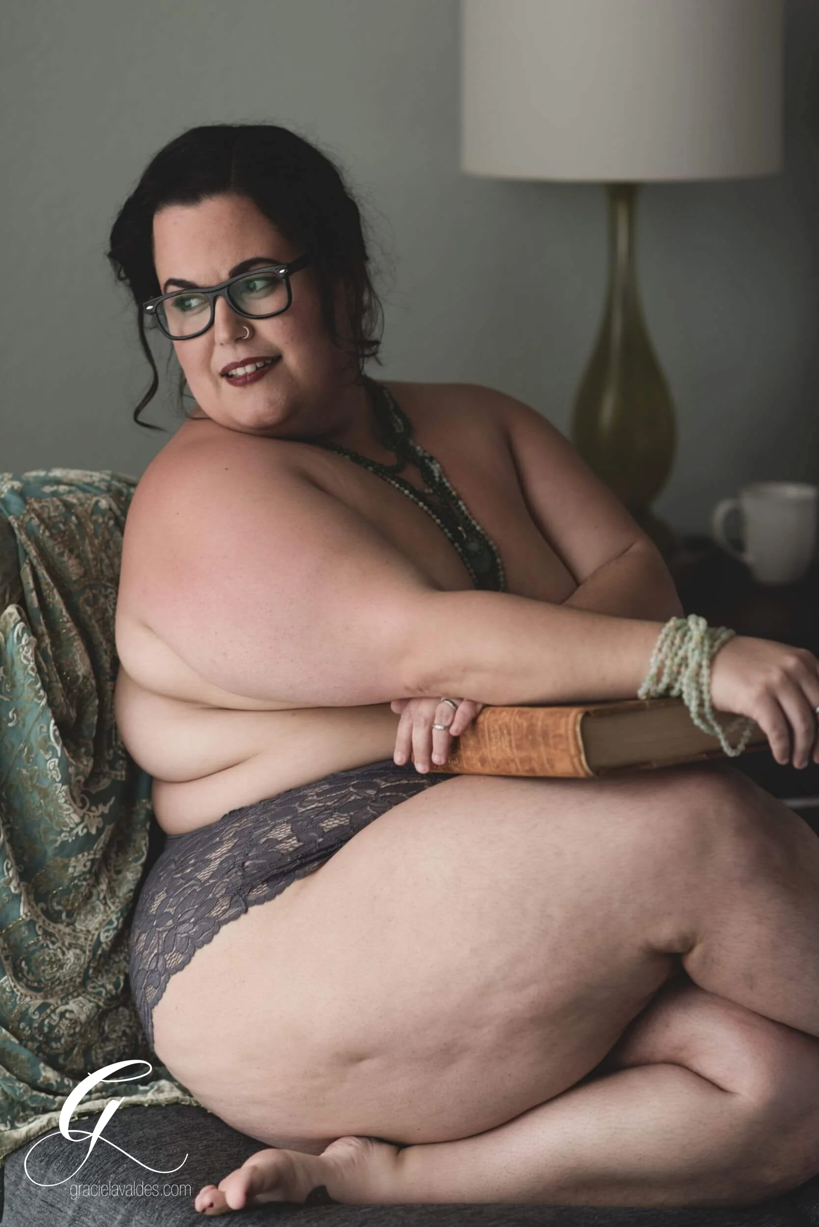 My photo shoot mirrored my internal monologue perfectly. My first set, I was most worried about. Flowery, lacy, and so femme. Even with props that felt far too feminine of center, Graciela captured pictures that feel authentic to me. The second was exactly the cerebral sensuality that I dreamed about in a boudoir shoot. Dreamy, soft, and lost in thoughts of the sea. And then, we had a dance party. I danced in my chair. I danced on my feet. I juggled mangoes! I got out of my head and into my joy. Graciela got the whole sexy poem all on camera.